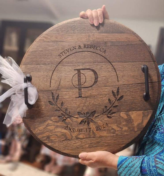 Sold outWhisky Barrel Lid Charcuterie Board